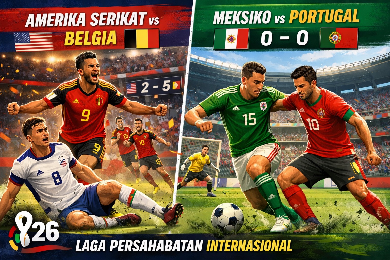 Laga persahabatan internasional jelang Piala Dunia 2026 menghadirkan dua pertandingan menarik. Amerika Serikat harus menelan kekalahan telak dari Belgia, sementara Meksiko sukses menahan imbang Portugal […]
