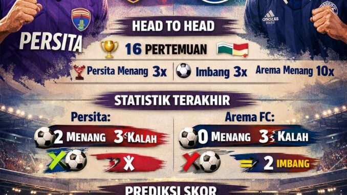 Pertandingan antara Persita Tangerang vs Arema FC menjadi salah satu laga menarik di kompetisi sepak bola Indonesia. Kedua tim memiliki sejarah pertemuan yang cukup panjang dengan persaingan yang sering berlangsung ketat. Dalam artikel ini akan dibahas prediksi pertandingan Persita vs Arema FC, statistik head to head (H2H), performa terbaru kedua tim, serta prediksi skor yang berpotensi terjadi.