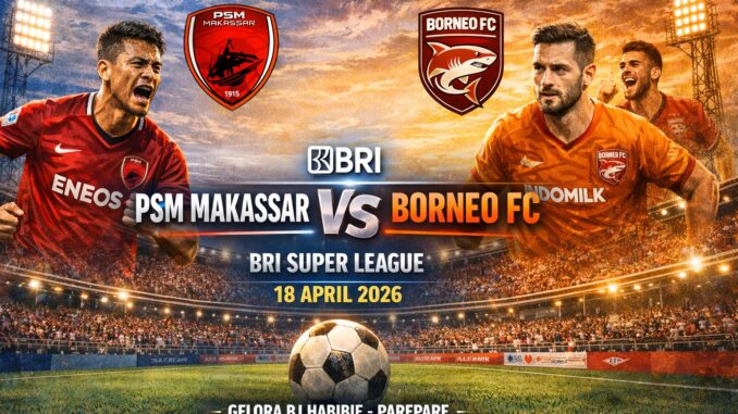 Pertandingan seru akan tersaji dalam lanjutan BRI Super League 2025/2026 ketika PSM Makassar vs Borneo FC saling berhadapan pada 18 April 2026. Laga ini diprediksi menjadi salah satu duel paling menarik di pekan ke-28 kompetisi karena kedua tim memiliki kepentingan berbeda dalam perburuan poin.
