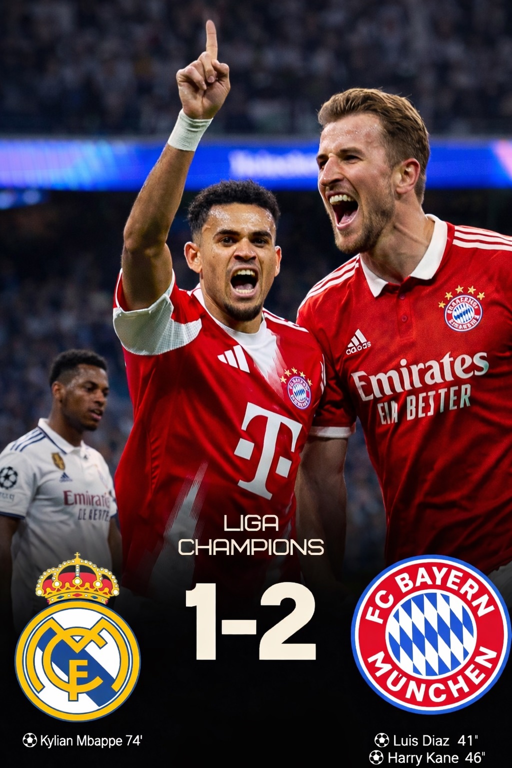 Liga Champions kembali menghadirkan pertandingan besar yang menyita perhatian pecinta sepak bola dunia. Dalam laga yang berlangsung di Stadion Santiago Bernabeu, Bayern Munchen berhasil mempermalukan tuan rumah Real Madrid dengan kemenangan penting. Gol dari Luis Diaz dan Harry Kane memastikan kemenangan tim raksasa Jerman tersebut dalam pertandingan yang berlangsung sengit.